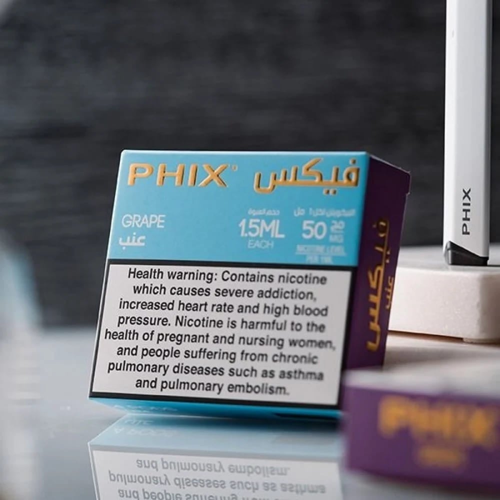 • المكونات الطبيعية: تعتمد PHIX على مكونات ذات جودة عالية في تصنيع البودات، مما يعزز من النكهة ويقلل من أي مخاطر.
