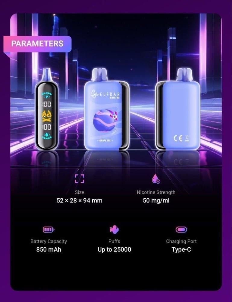 يتميز Elf bar Raya D3 بتصميم عصري وأنيق مع شاشة رقمية تعرض عدد السحبات المتبقية، مما يسهل عليك متابعة استخدامك للجهاز. بالإضافة إلى ذلك، فإن التصميم الجذاب يجعله مثاليًا لحمله واستخدامه في أي وقت وأي مكان.