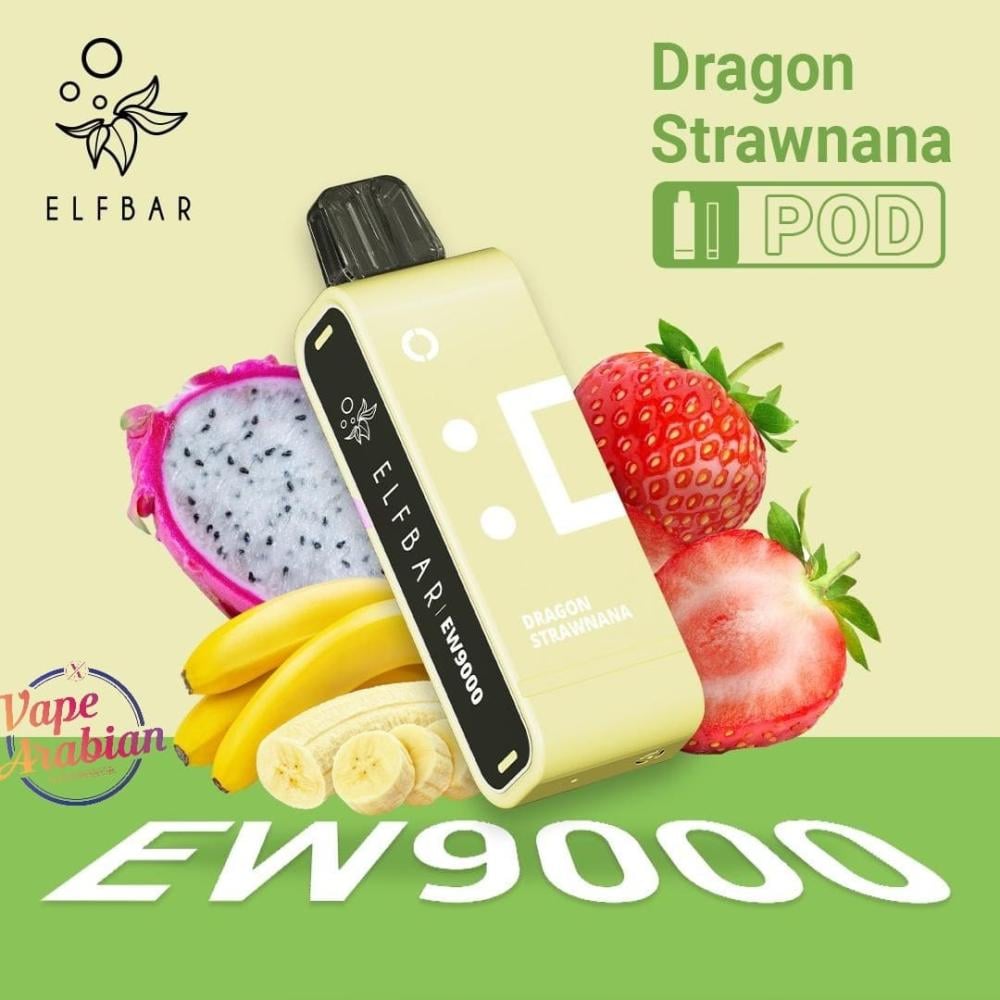 سحبة الف بار 9000 سحبة فراولة وموز وفاكهة التين ELFBAR VAPE EW9000 PUFFS DRAGON STRAWNANA